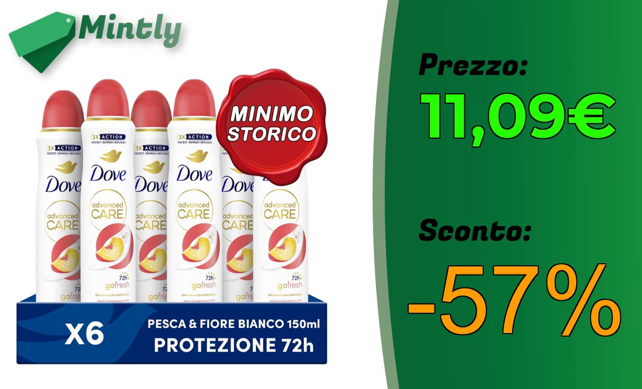 🔥 Dove Deodorante Spray Advanced Care Go Fresh Pesca, con Formula Idratante e Delicata sulla Pelle, Senza Alcol, Pelle Asciutta Fino a 72 Ore, Deodorante Uomo e Donna, 6 Pezzi da 150ml