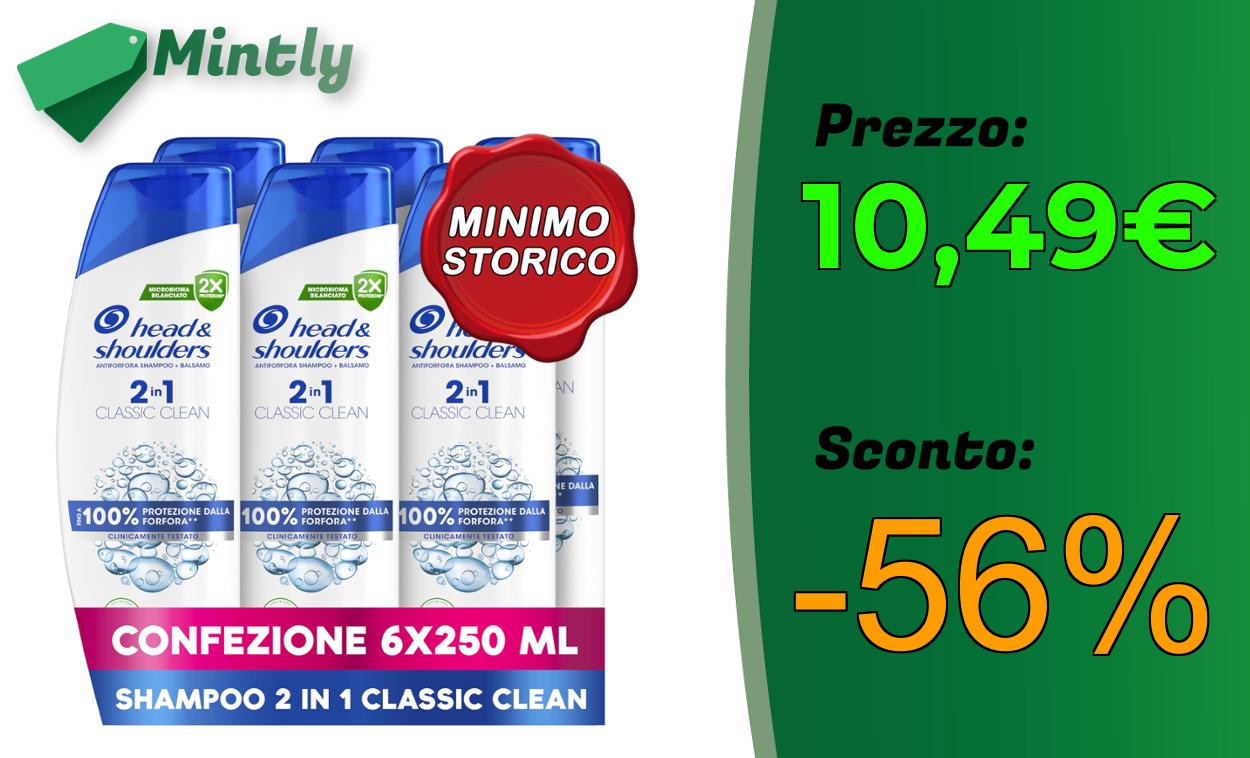 💣 Head & Shoulders Shampoo e Balsamo Antiforfora 2 in 1 Classic Clean, Sensazione Di Freschezza 6x250ml