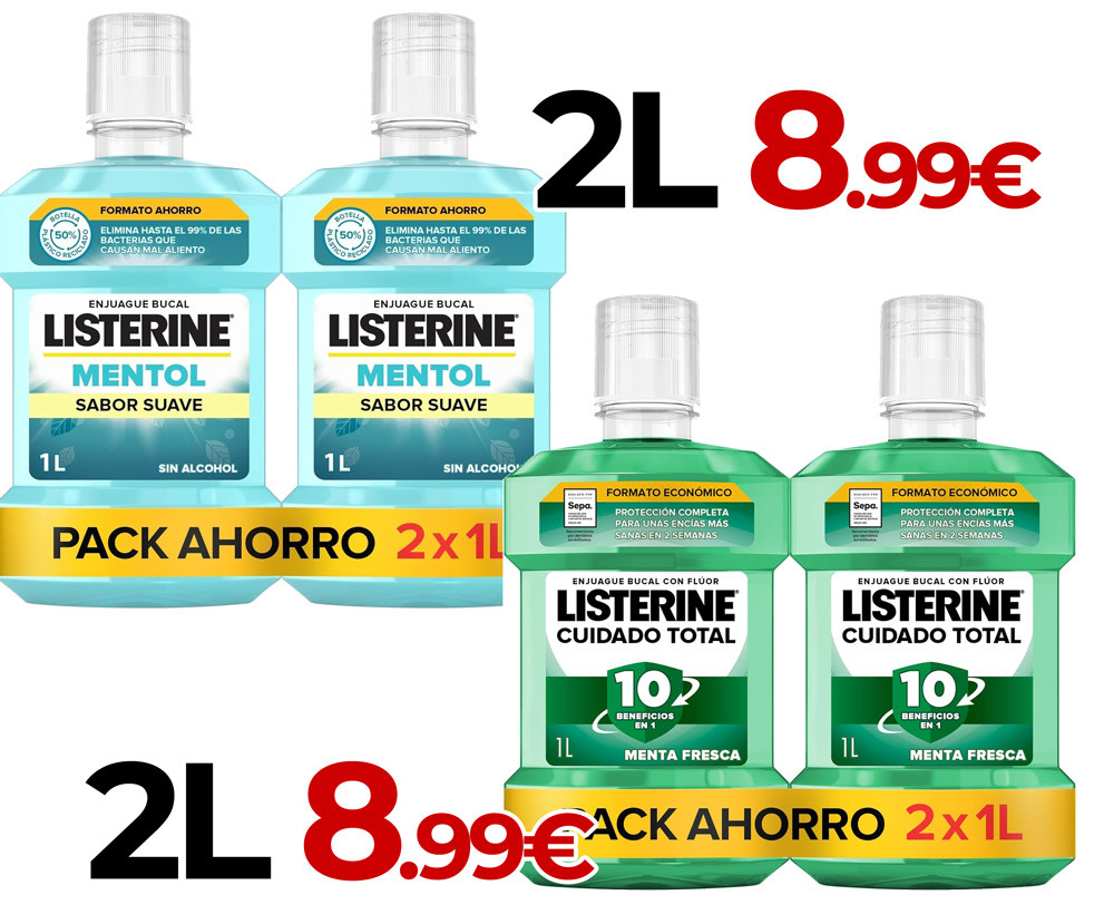 Pack 2L Listerine enjuague bucal Mentol / Suave / Cuidado total ►8.99€