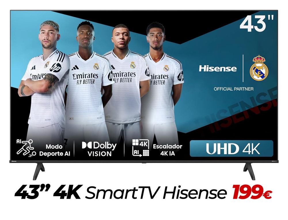 43" 4K Hisense Smart TV con WiFi, Bluetooth, TDT HD ►199€