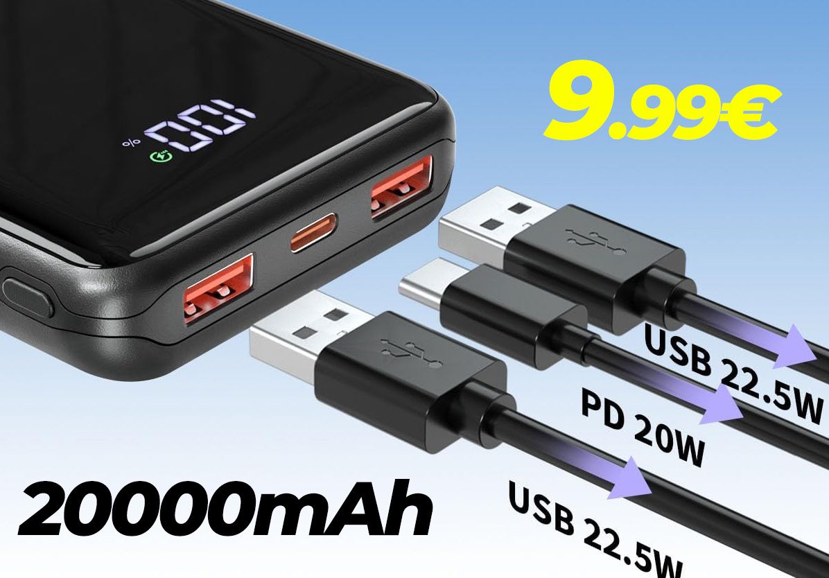 Batería USB 20000mAh - 2x USB-A + 1x USB-C - carga USB-C ►9.99€ en Amazon