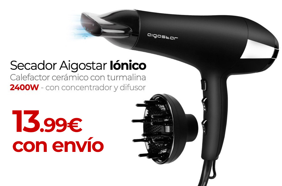 Secador de pelo iónico Aigostar 2400W con difusor y concentrador ►13.99€ con envío