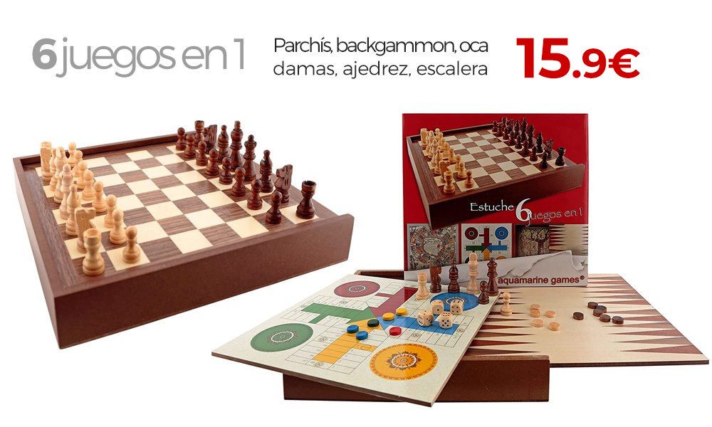 PACK de 6 juegos de mesa: ajedrez, damas, oca, parchís, escalera y backgammon ►15.9€