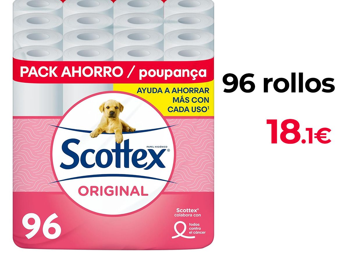 Pack 96 Rollos de papel higiénico Scottex ►18.1€ en Amazon