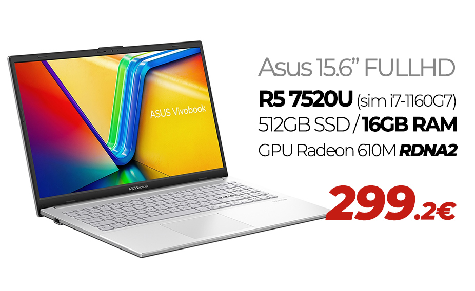ASUS 15.6" FHD - Ryzen 5 7520U - 16GB DDR5 - 512GB SSD ►299.2€