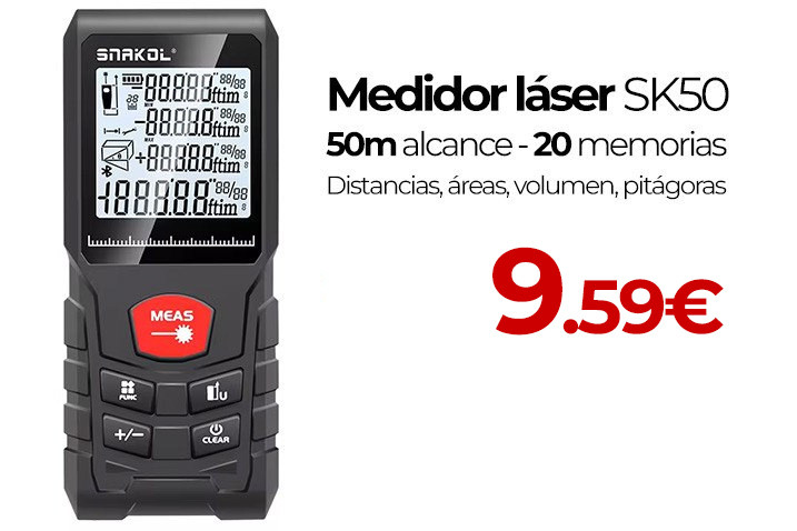 Distanciómetro láser - alcance 50m - con áreas y volumen - 20 memorias ►9.59€