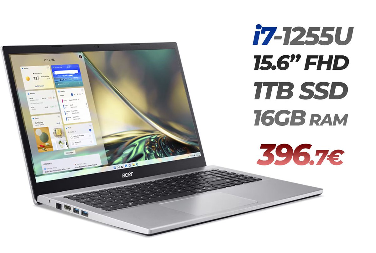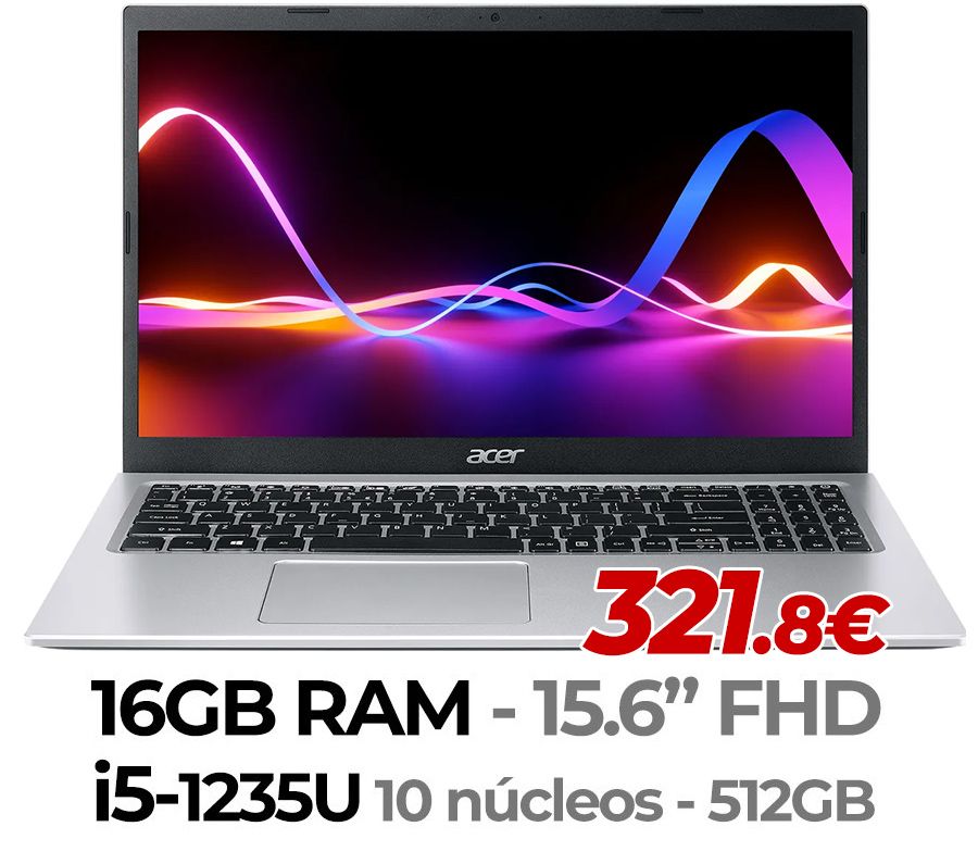 Acer 15.6" FULLHD - 16GB RAM - i7-1255U 10 núcleos - 1TB ►396.75€