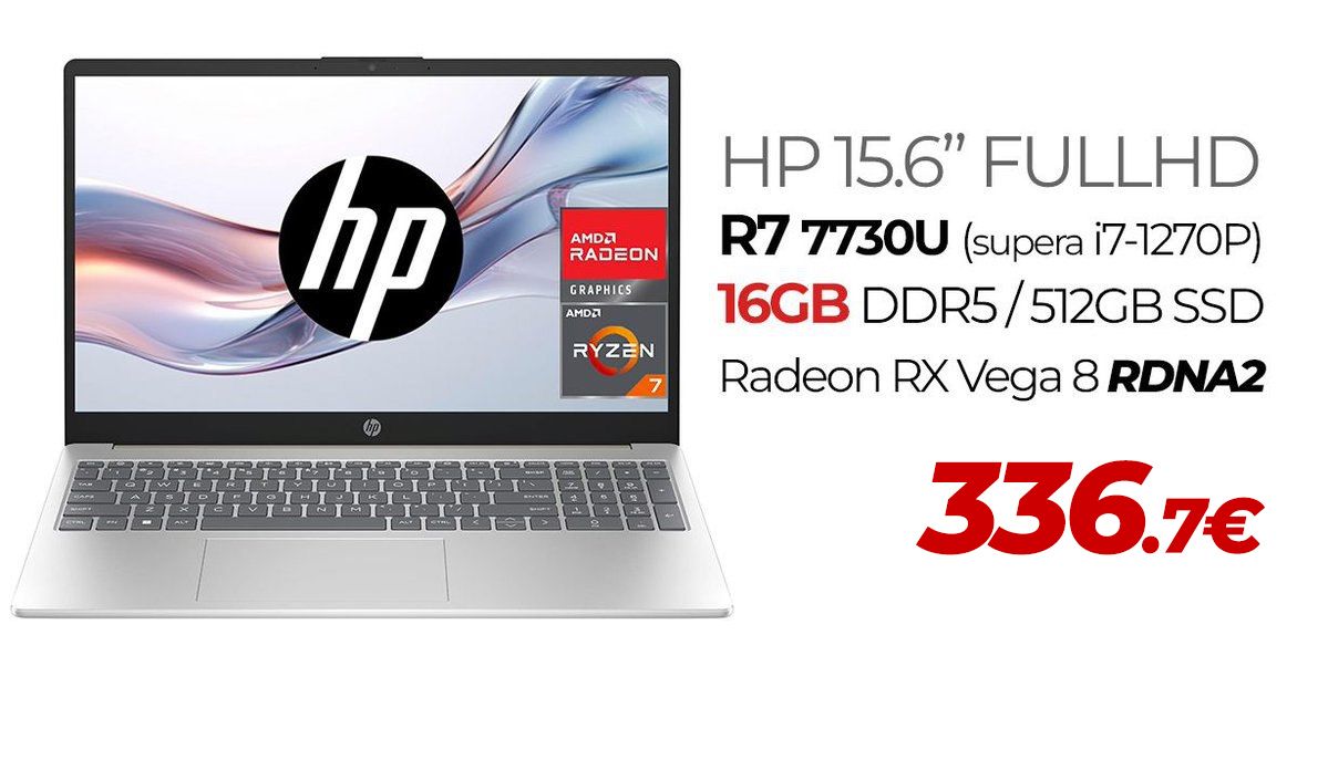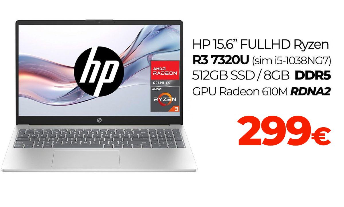 15.6" 1080p - Ryzen 3 7320U (similar i5-1038NG7) - 8GB DDR5 - 512GB SSD ►299€