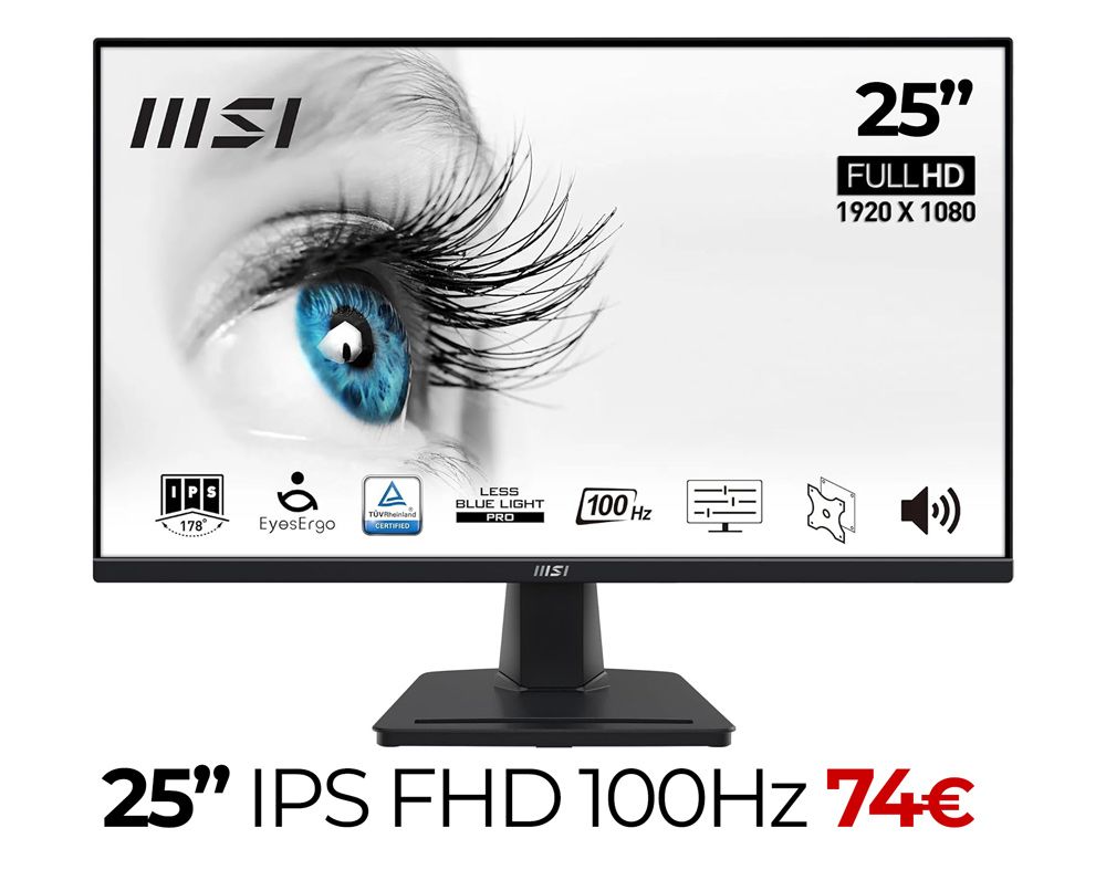 Monitor MSI 24.5" IPS FULLHD 100Hz - altavoces integrados ►74€