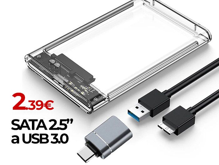 Carcasa para disco duro / SSD SATA 2.5"- USB 3.0 + adaptador USB-C ►2.39€ (envío gratis al pedir 3 cosas)