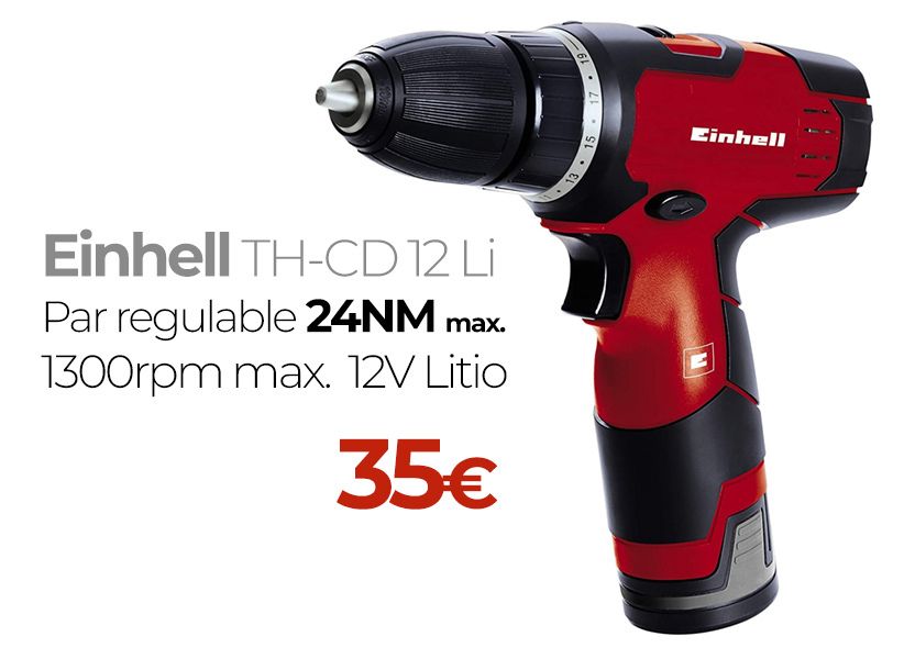 Taladro atornillador inalámbrico Einhell TH-CD 12-2 Li - par ajustable 24Nm ►35€
