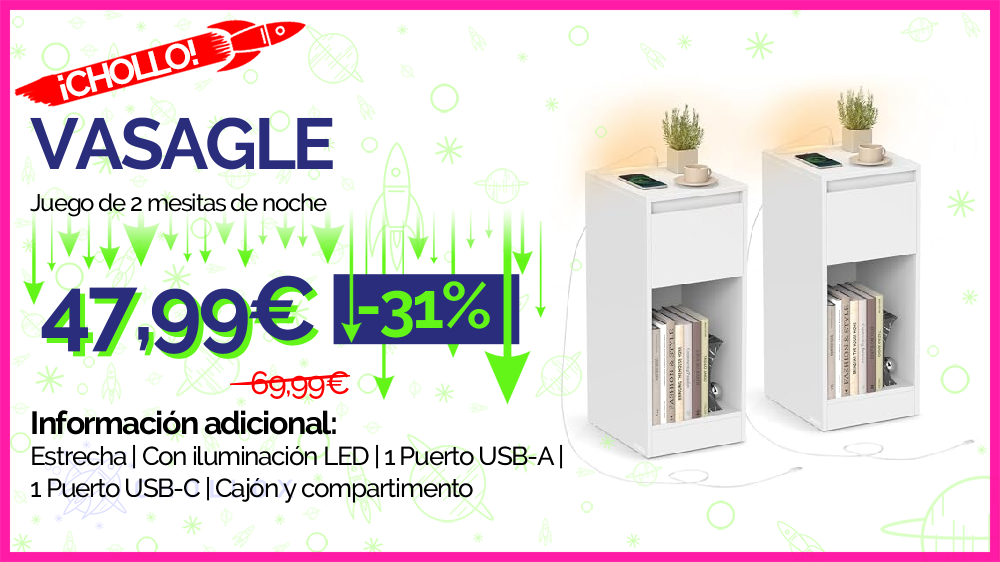 💥 🔉 VASAGLE - Juego de 2 mesitas de noche #Amazon
