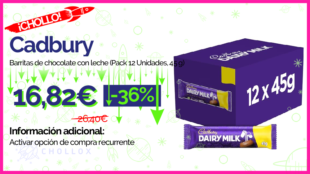 💥 🔉 Cadbury - Barritas de chocolate con leche (Pack 12 Unidades, 45 g) #Amazon