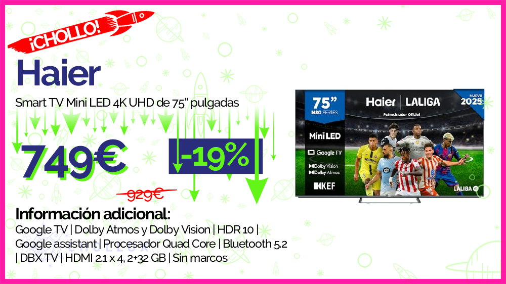 💥 🔉 Haier - Smart TV Mini LED 4K UHD de 75'' pulgadas #Amazon
