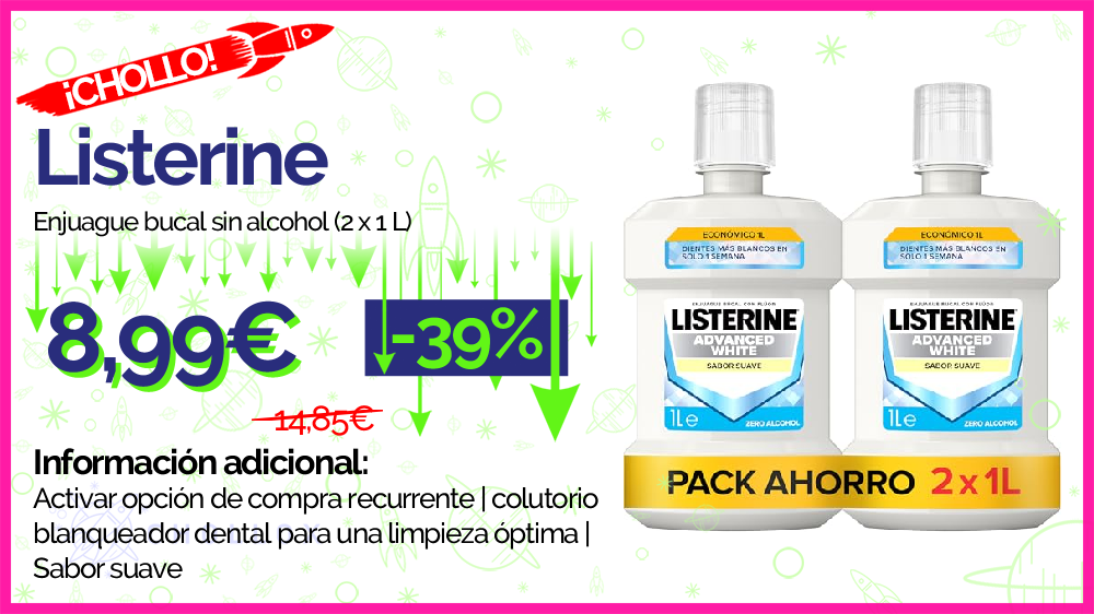 💥 🔉 Listerine - Enjuague bucal sin alcohol (2 x 1 L) #Amazon