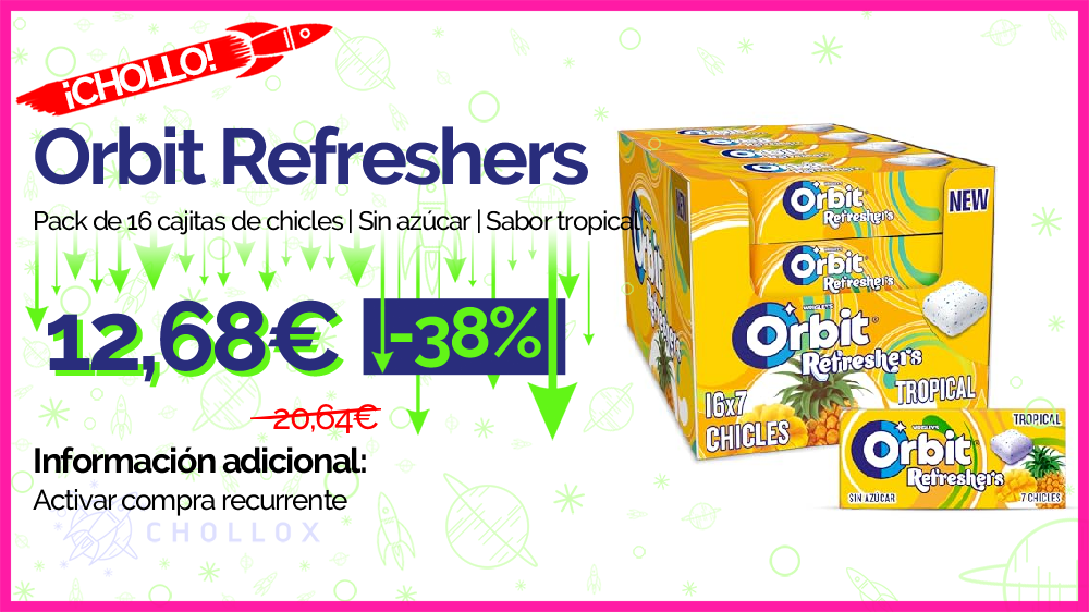 💥 🔉 Orbit Refreshers - Pack de 16 cajitas de chicles | Sin azúcar | Sabor tropical #Amazon