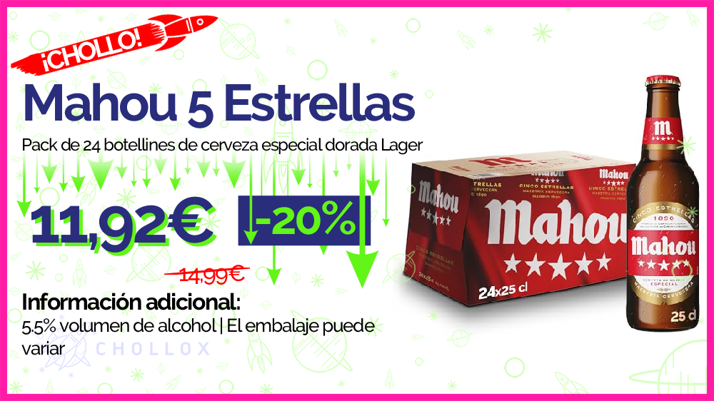 💥 🔉 Mahou 5 Estrellas - Pack de 24 botellines de cerveza especial dorada Lager #Amazon