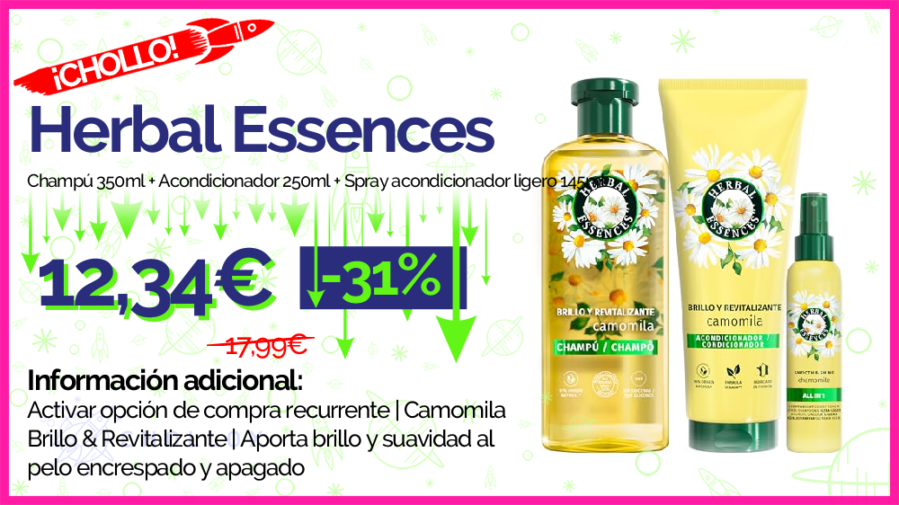 💥 🔉 Herbal Essences - Champú 350ml + Acondicionador 250ml + Spray acondicionador ligero 145ml #Amazon