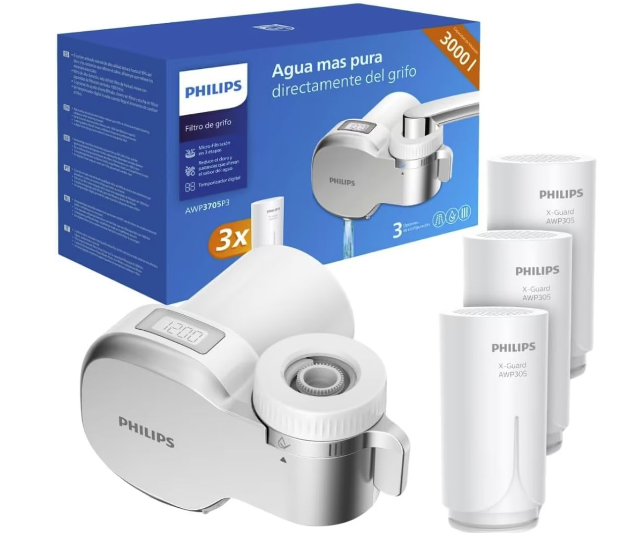 π Philips Filtro de Agua Ontap, microfiltraciΓ³n con pantalla digital y 3 cartuchos de repuesto, capacidad de1000 L. #Amazon