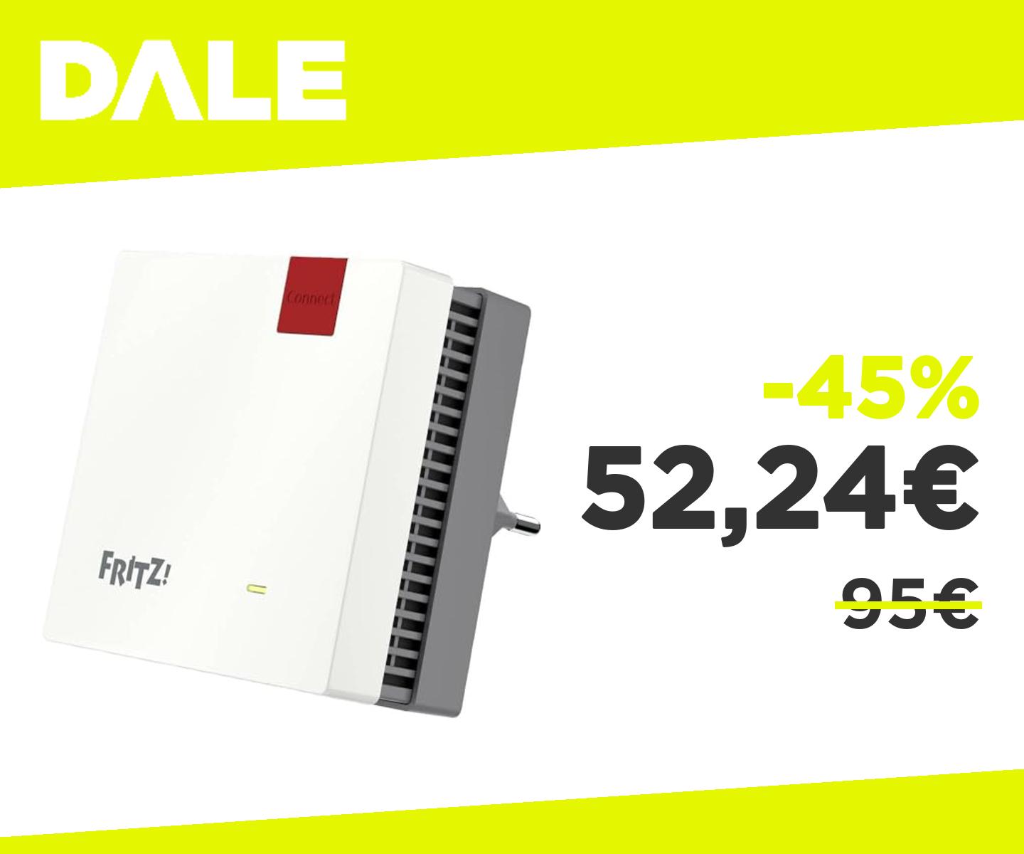 👉🏻 FRITZ!Repeater 1200 AX Edition International, Ripetitore - Wi-Fi 6 extender Dual Band con 2.400 Mbit/s (5 GHz) & 600 Mbit/s (2,4 GHz), Mesh, Access Point, 1x Gigabit LAN, Interfaccia in italiano