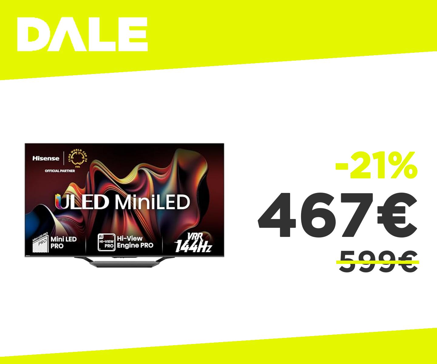 👉🏻 Hisense TV 55" Mini-LED 4K 55U72NQ - Smart TV VIDAA U7, Dolby Vision IQ, HDR 10+ Adaptive, 144Hz