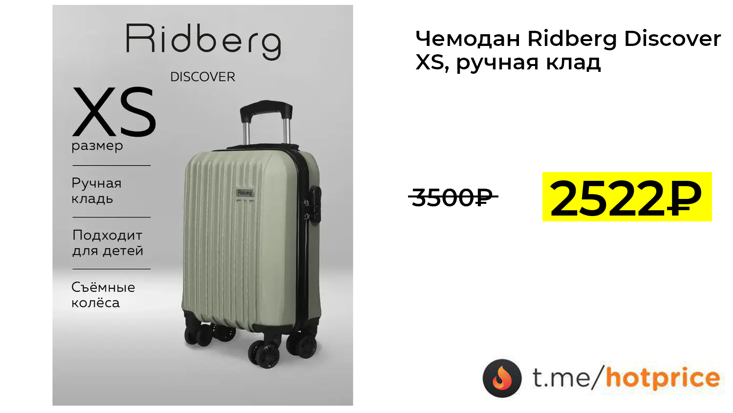 🔹 Чемодан Ridberg Discover XS, ручная кладь (с ВБ кошельком и подпиской, без неё 2800₽) за 2522₽ ❗️ (везде: 3500+₽)