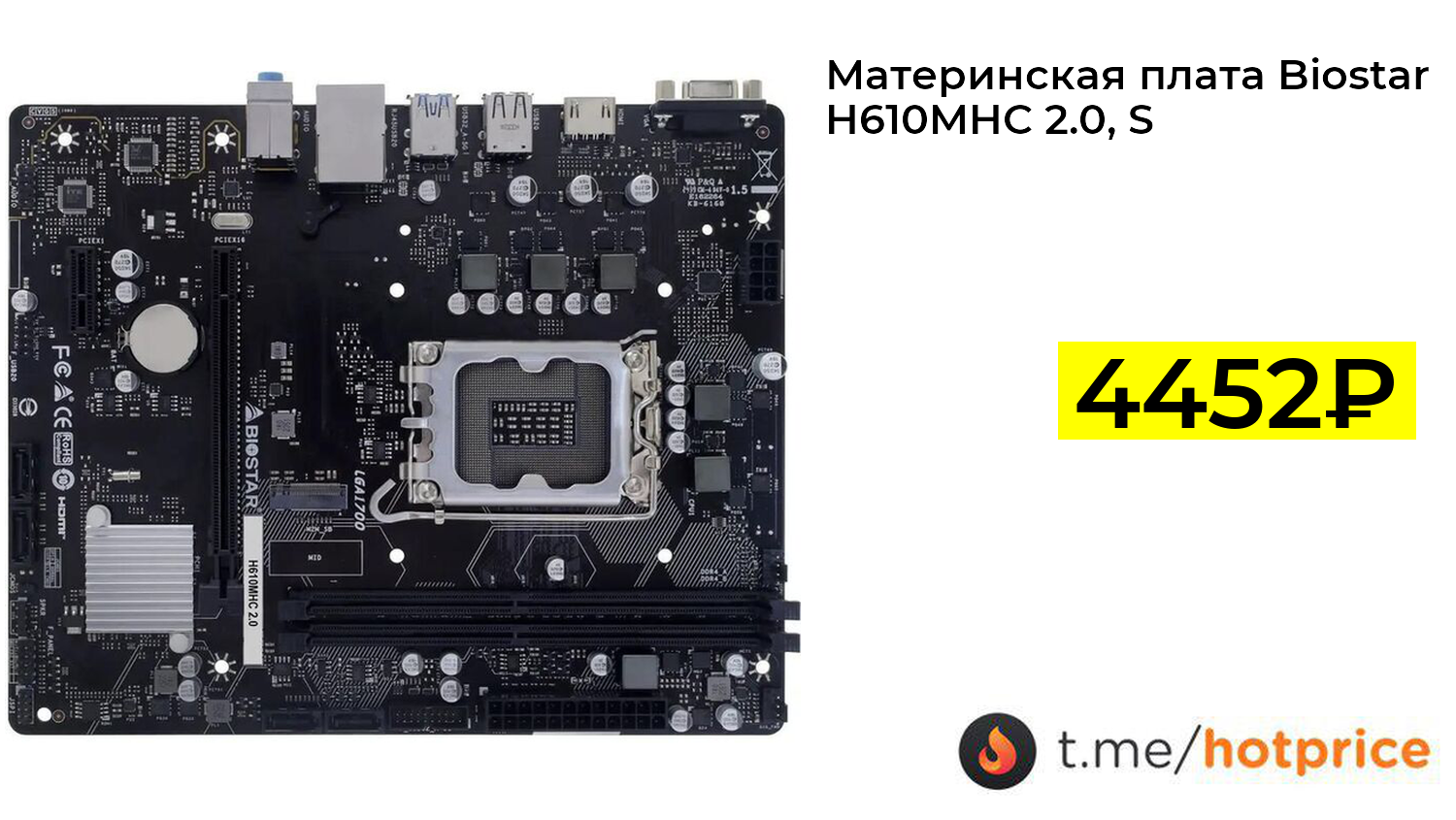 🔹 Материнская плата Biostar H610MHC 2.0, Socket LGA 1700, Intel H610, mATX, Ret за 4452₽ ❗️