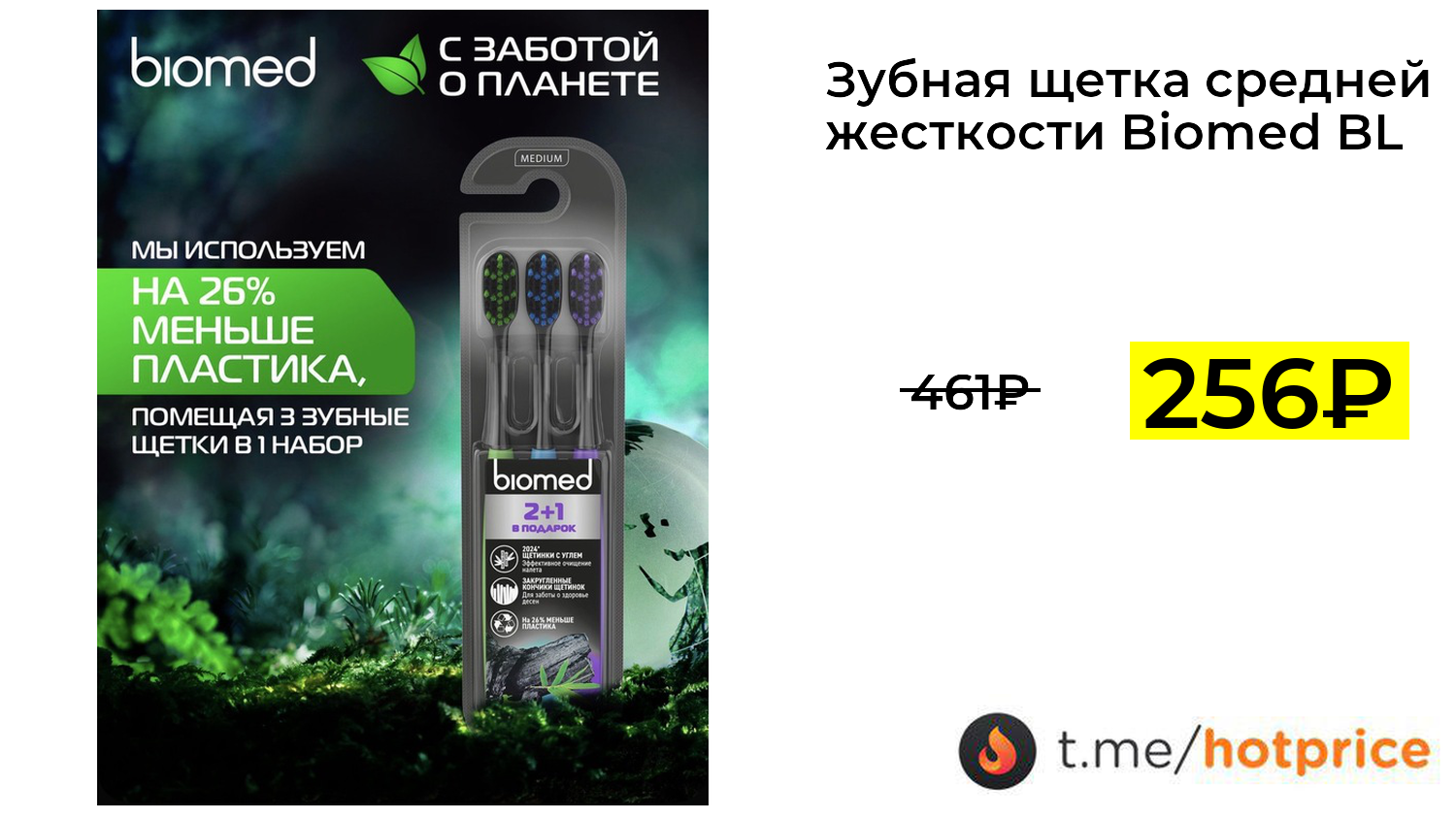 🔹 Зубная щетка средней жесткости Biomed BLACK MEDIUM, 3 шт. за 256₽ ❗️ (везде: 461+₽)