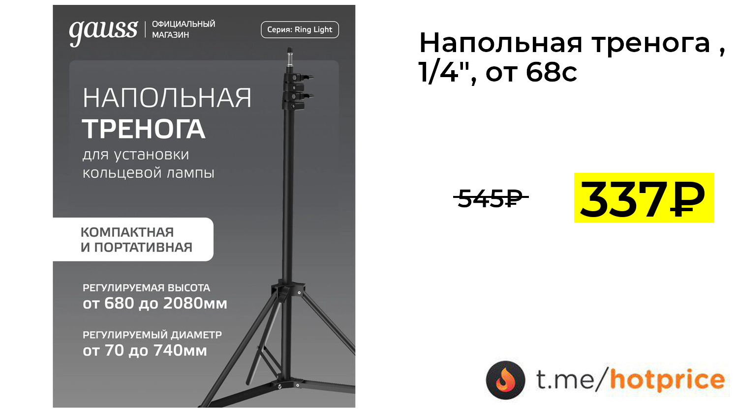 🔹 Напольная тренога (штатив), 1/4", от 68см до 208см за 337₽ ❗️ (везде: 545+₽)
