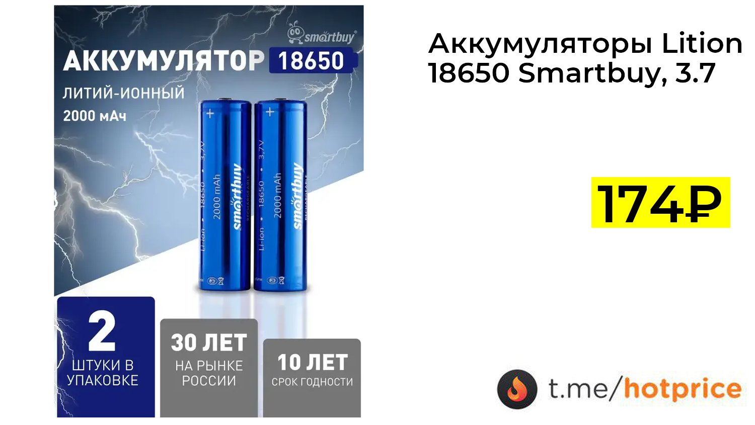 🔹 Аккумуляторы Lition 18650 Smartbuy, 3.7 V, 2000 мАч, 2 штуки (по озон карте) за 174₽ ❗️