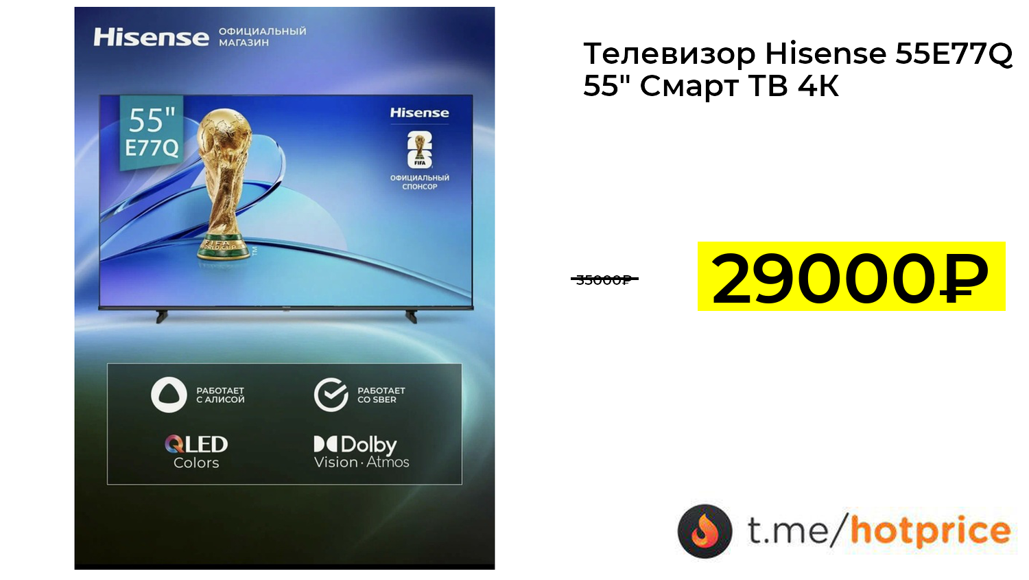 🔹 Телевизор Hisense 55E77Q 55" Смарт ТВ 4К за 29000₽ ❗️ (везде: 35000+₽)