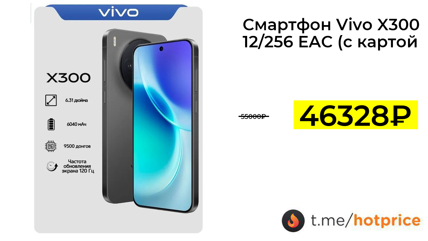 🔹 Смартфон Vivo X300 12/256 EAC (с картой OZON, из-за рубежа, продавец без отзывов) за 46328₽ ❗️ (везде: 55000+₽)