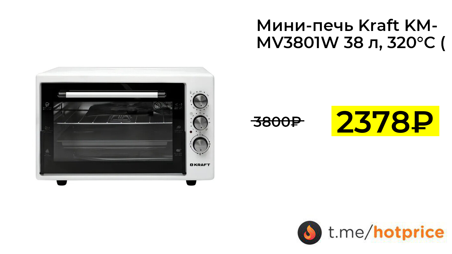 🔹 Мини-печь Kraft KM-MV3801W 38 л, 320°С (с картой OZON) за 2378₽ ❗️ (везде: 3800+₽)