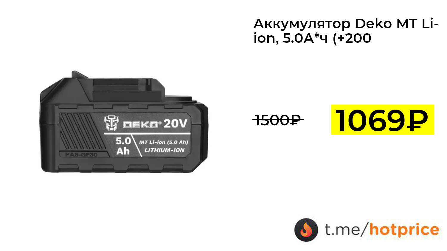 🔹 Аккумулятор Deko MT Li-ion, 5.0А*ч (+200 балов за отзыв) за 1069₽ ❗️ (везде: 1500+₽)