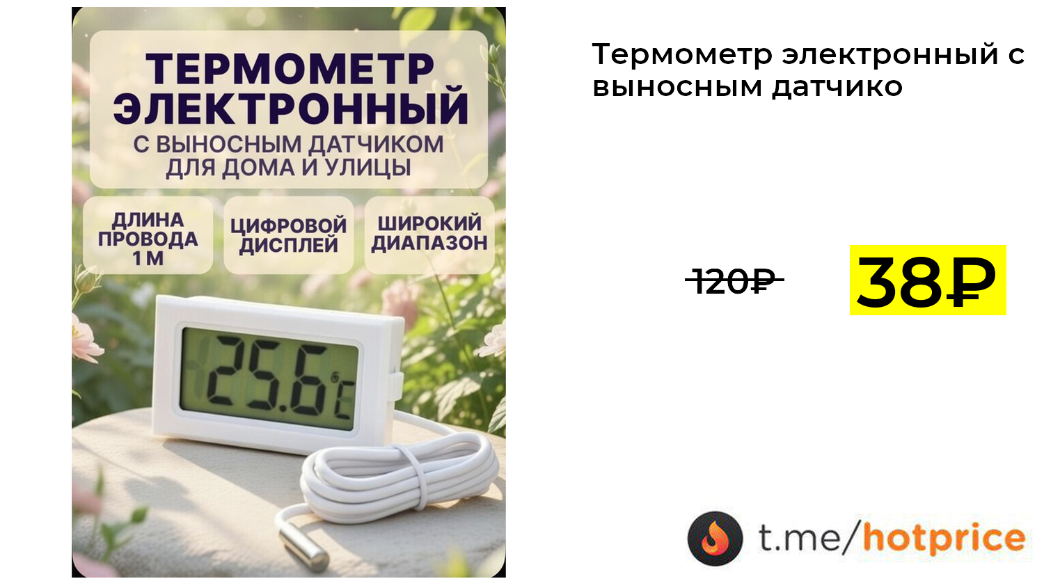 🔹 Термометр электронный с выносным датчиком (с картой OZON) за 38₽ ❗️ (везде: 120+₽)
