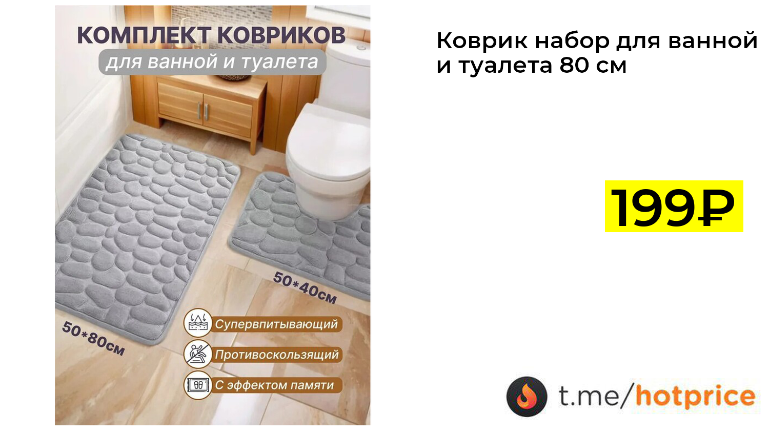 🔹 Коврик набор для ванной и туалета 80 см (с картой OZON) за 199₽ ❗️