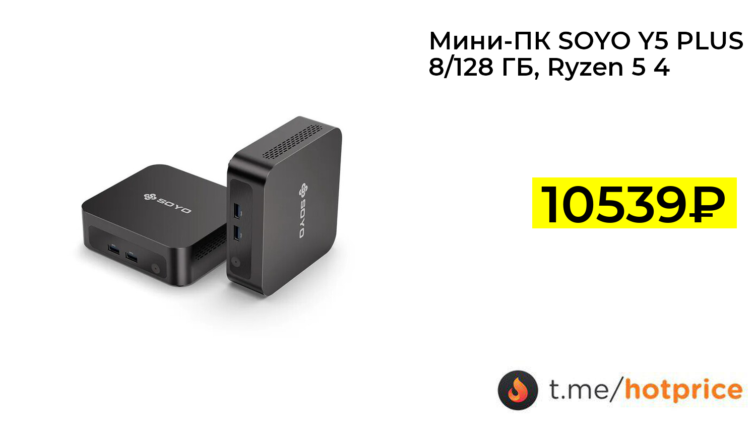 🔹 Мини-ПК SOYO Y5 PLUS 8/128 ГБ, Ryzen 5 4600U, RAM 8 ГБ, SSD 128 ГБ, Windows 11 Pro (с картой OZON, из-за рубежа) за 10539₽ ❗️
