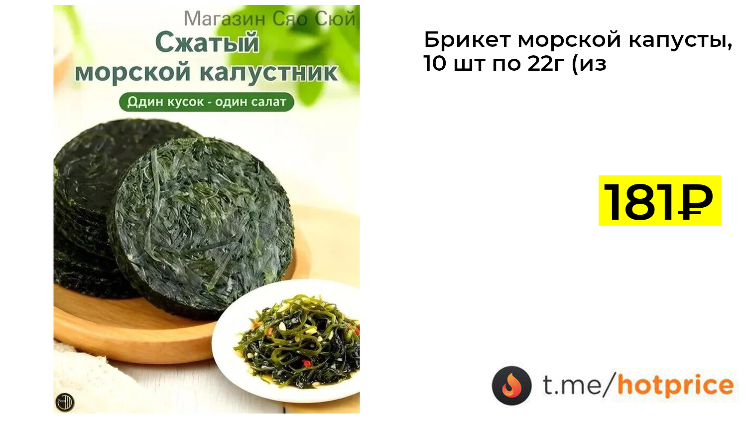 🔹 Брикет морской капусты, 10 шт по 22г (из-за рубежа, с Озон-картой) за 181₽ ❗️