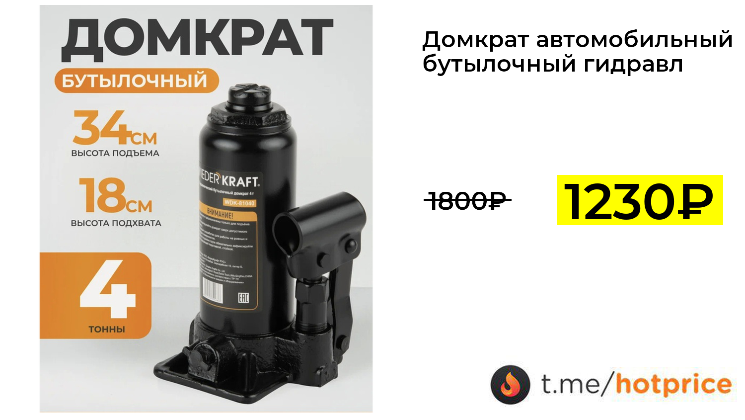 🔹 Домкрат автомобильный бутылочный гидравлический WIEDERKRAFT WDK-81040 4 т высота 180-345 за 1230₽ ❗️ (везде: 1800+₽)
