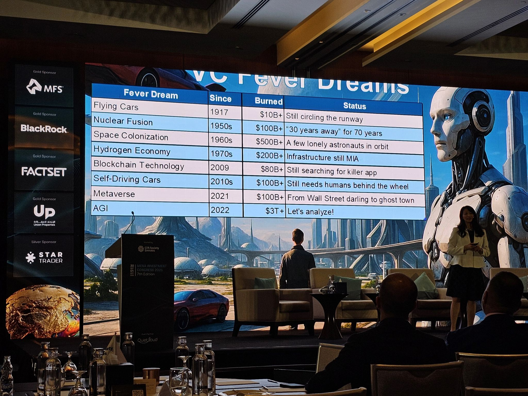 Артем Седов (Woo Capital Partners) выложил классный слайд с конференции MENA Investment Congress, в котором мы видим саммари трендов - сколько было потрачено инвестиций и какие результаты.