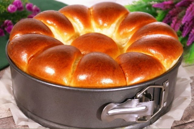 Выкладываю заготовки в подготовленную форму. Одну в середину, остальные - по краям. Получается форма, похожая на цветок. Накрываю форму пленкой и оставляю на расстойку на 40-45 минут.