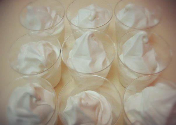 Разогрейте духовку до 80 градусов Цельсия. Устелите дно формы (22Х22 сантиметра) бумагой для выпечки, как того требует кулинария. Взбейте белок в плотную пену и постепенно добавляйте к нему сахар. Ложкой вмешайте в белковую массу масло и постепенно всыпайте муку с разрыхлителем. Перемешайте аккуратно.