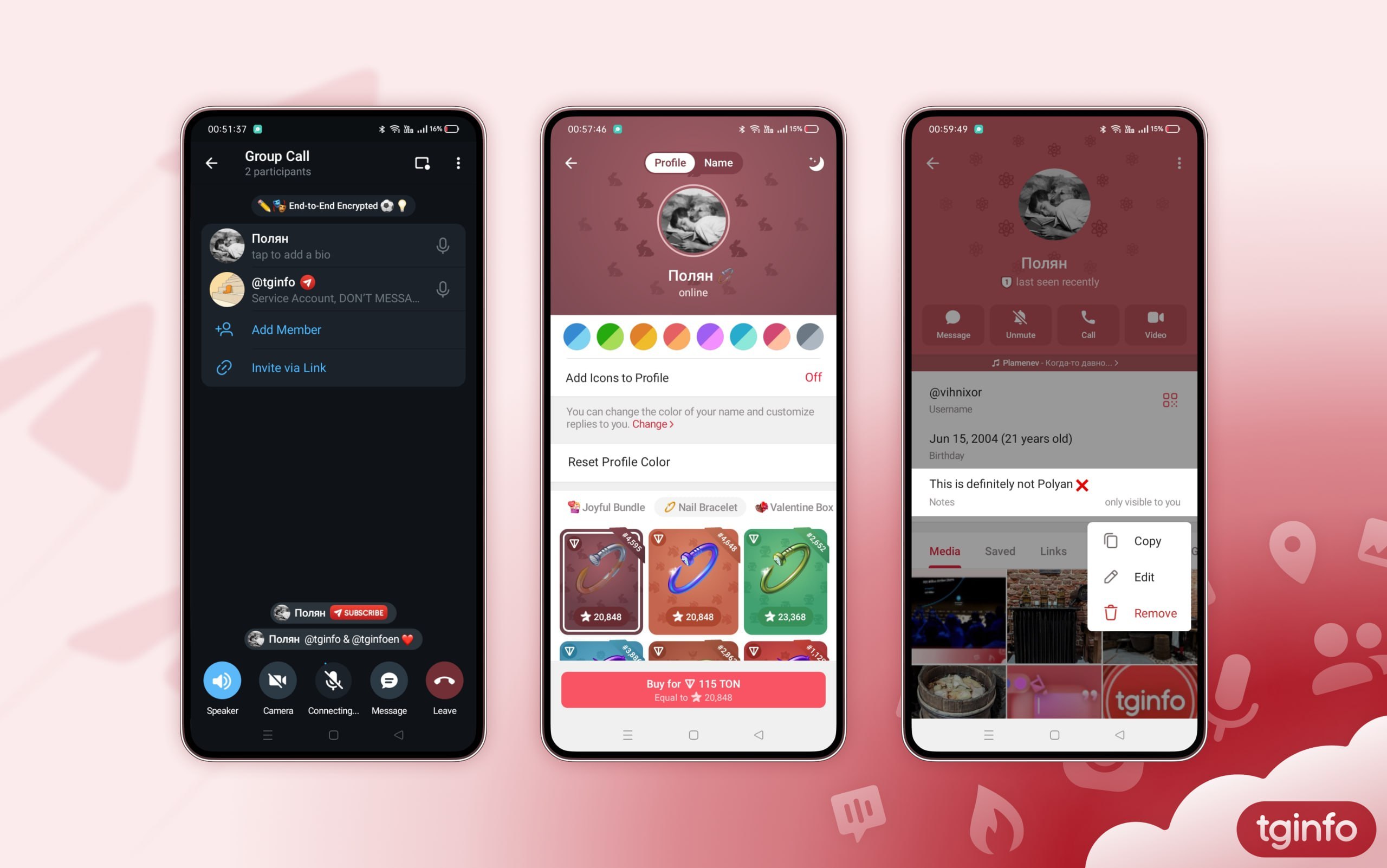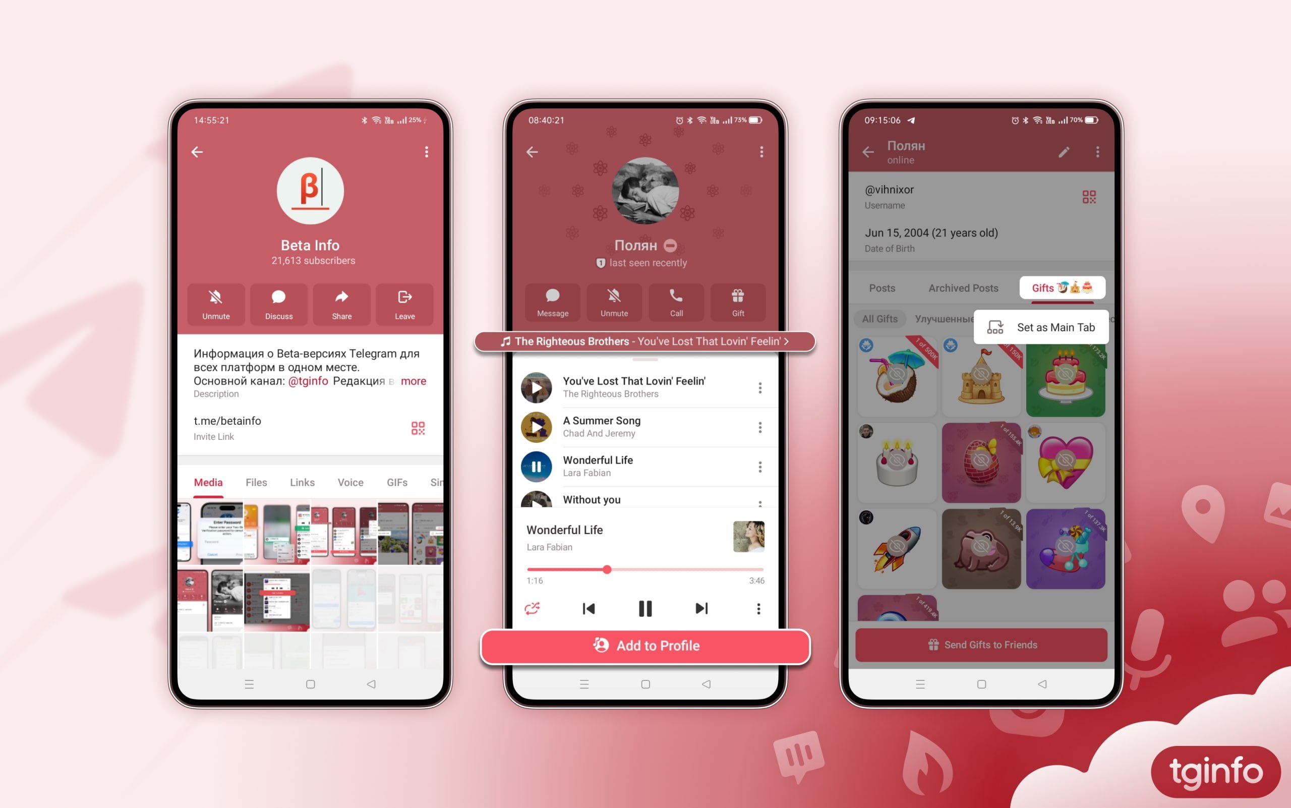 • Temi basati sui regali: sono state aggiunte dozzine di nuovi sfondi di chat dinamici basati su regali unici, che possono essere impostati come tema personalizzato in qualsiasi chat privata. Tuttavia, al momento tali sfondi non sono disponibili per tutti i regali da collezione.