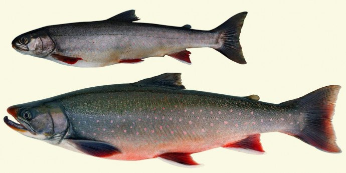 ❗️Для популяции характерны резкие колебания численности и периодическое появление гигантских особей-каннибалов. Часть взрослых рыб (массой до 300 г) переходит на питание собственной молодью. Благодаря такому высококалорийному рациону они резко ускоряются в росте, достигая массы до 900 г. Причем перед нерестом даже эти гиганты перестают есть и нерестятся вместе с обычными, мелкими гольцами.